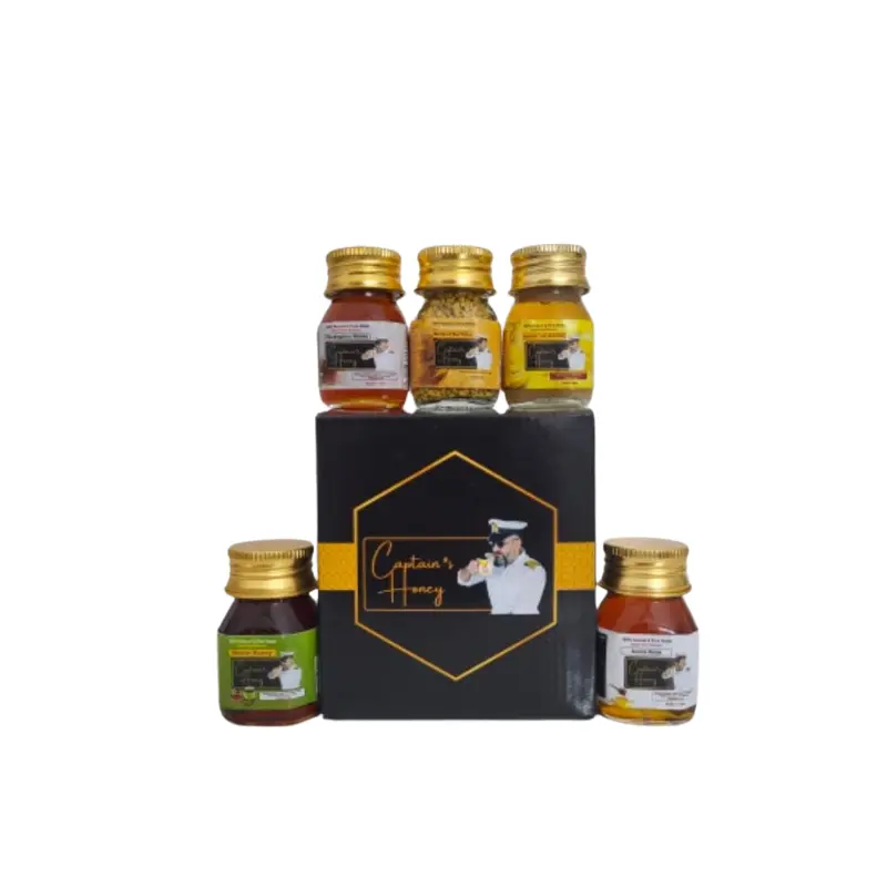 Savor the authentic flavor of pure, Captain's Honey with every spoonful. Our honey is sourced directly from hives and meticulously cared for by our dedicated beekeepers, ensuring only the highest quality is delivered to your table. Indulge in the natural sweetness nature has intended, evident in every jar of our carefully crafted honey.