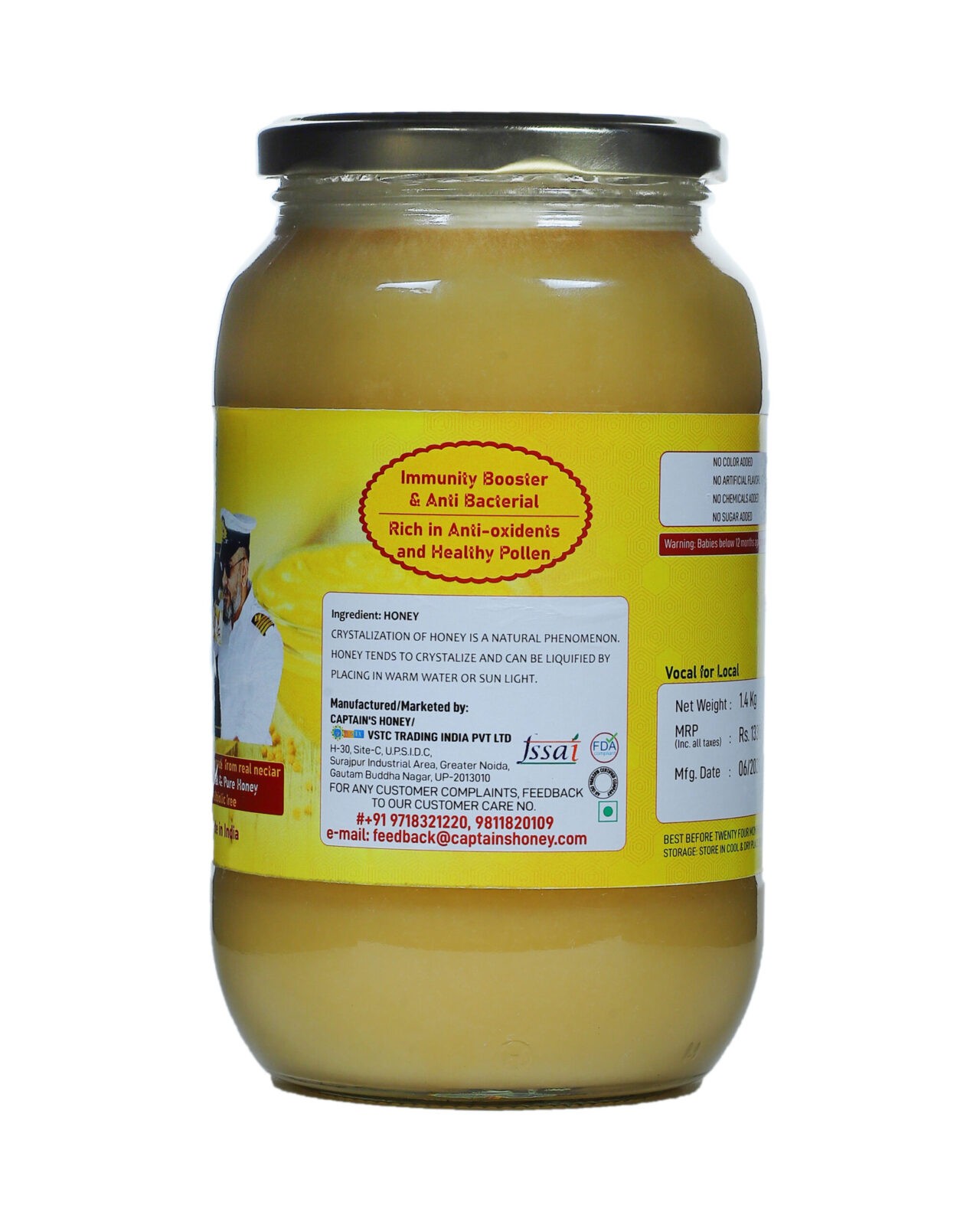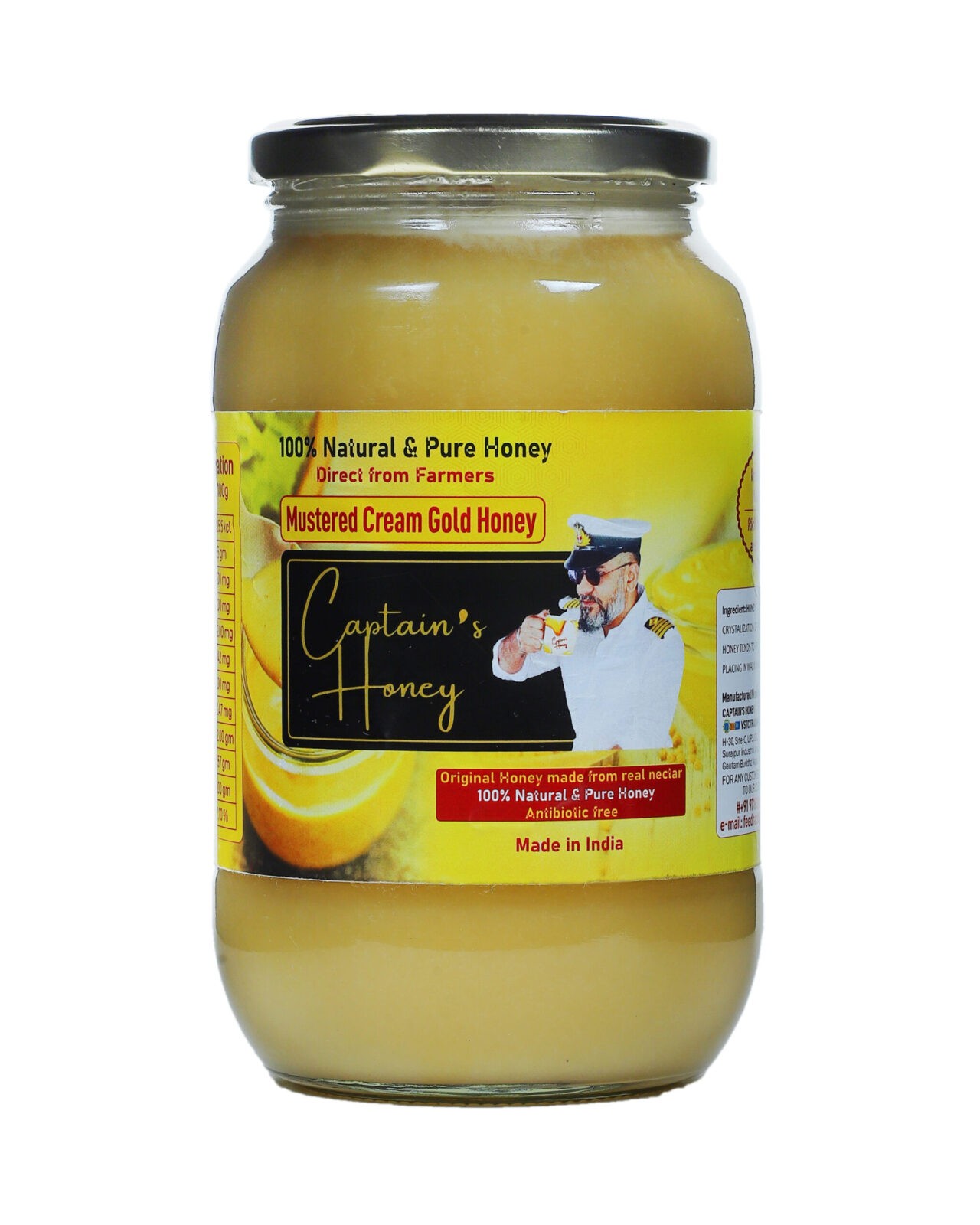 Gold Cream Honey Captain’s Honey Gold Cream Honey (Mustard Honey) is considered to be the best natural sweetener which has tremendous health benefits, regulating blood sugar levels is one of them. Its regular use treats cough, cold, and fever. Mustard cream honey aids in the proper functioning of the digestive system and also helps in reducing weight. Provides energy and strengthens immunity. Stay fit, feel young and enhance athletic performance. Mustard honey is unheated & 100% pure with no additives, no artificial