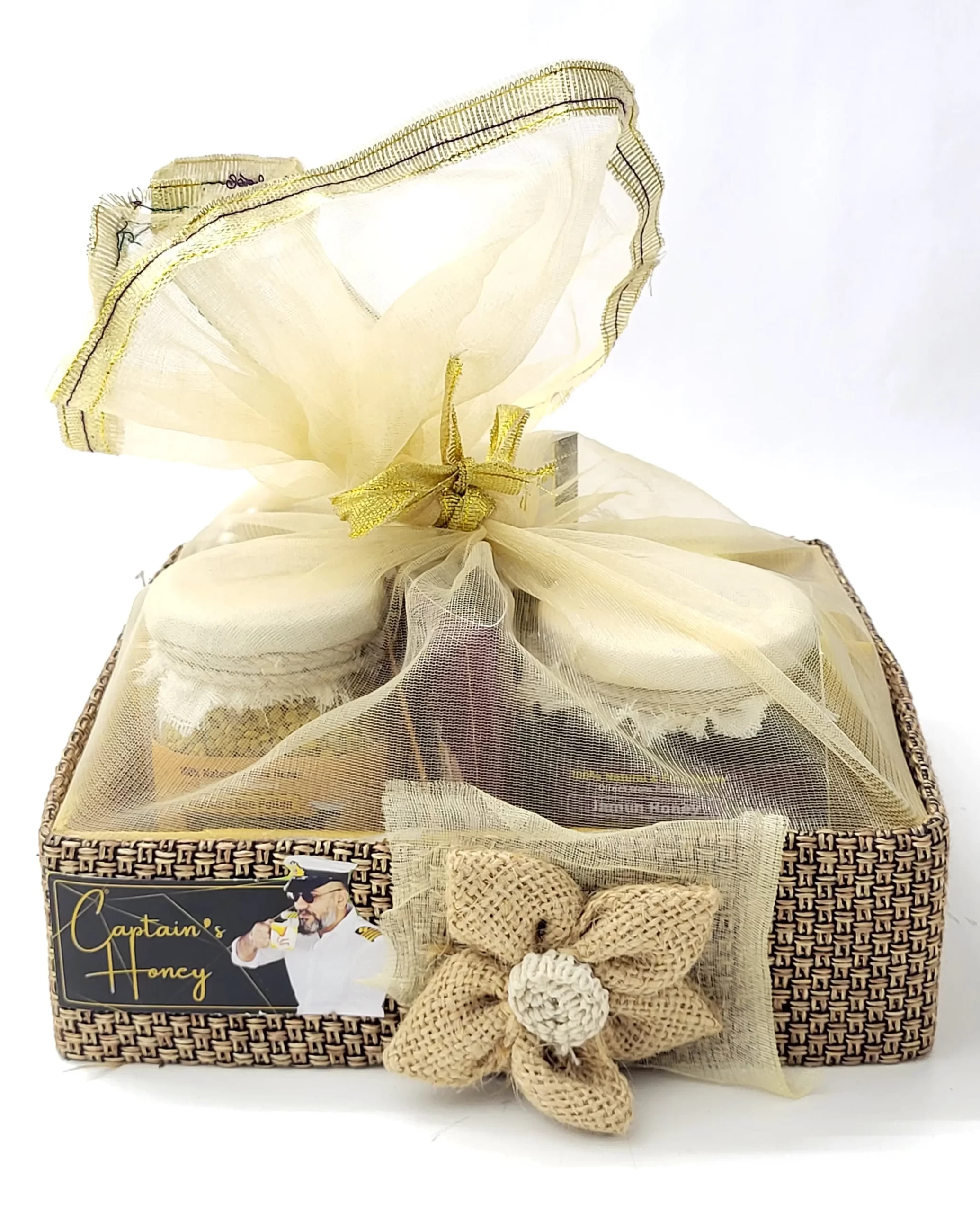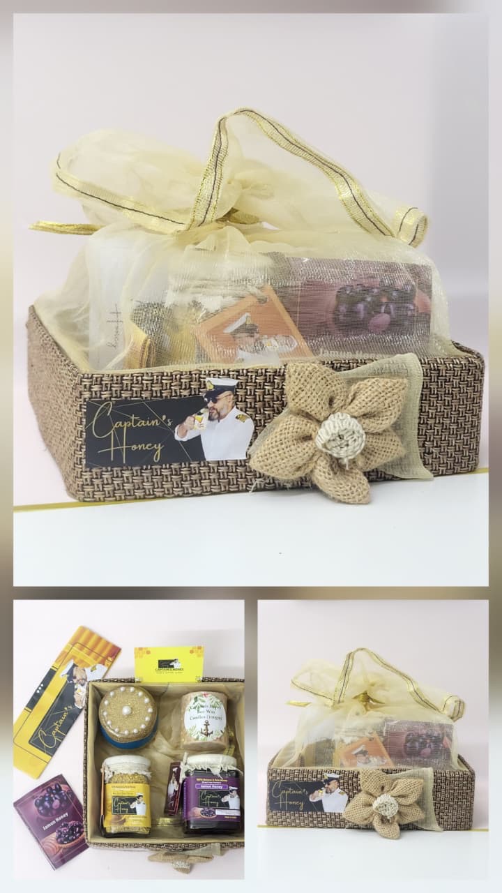 The Captain's Executive Collection presenting a timeless gift for the discerning professional, The Captain's Executive Collection is a curated ensemble of essentials designed to inspire and enrich the daily grind. Captain's HoneyRoyal Nector Hamper